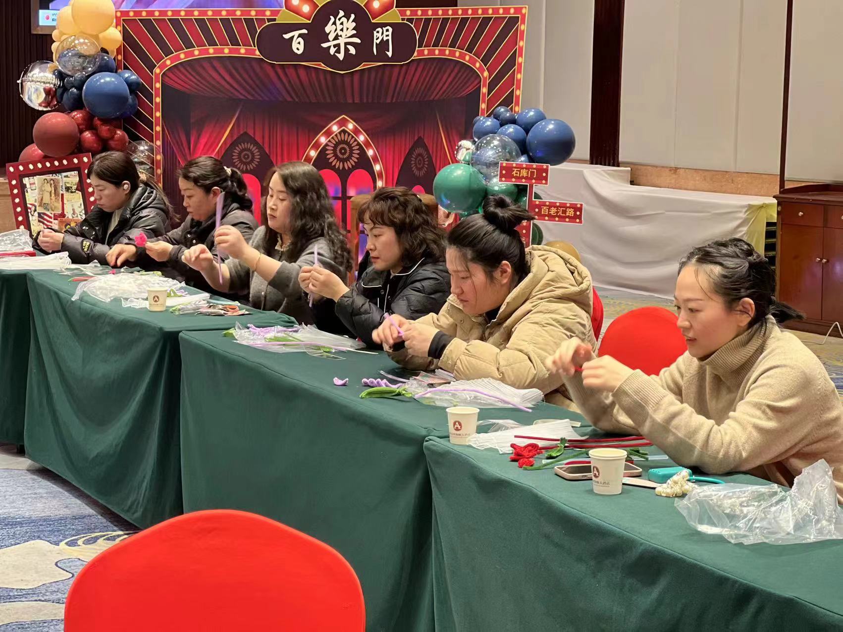 紧接着,手工DIY制作花朵环节将活动推向了高潮。她们化身巧手匠人,用五颜六色的纸张、布料和丝带等材料,制作出一朵朵精美的花朵。她们或独立完成,或相互合作,或请教老师,或交流心得,现场充满了欢声笑语和创意的火花。一朵朵手工花朵在女职工们的手中绽放,如同她们在工作和生活中展现的美丽与智慧。