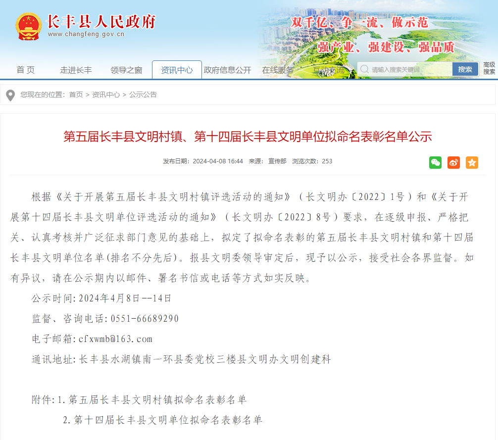 近日,长丰县精神文明指导委员会发布《第五届长丰县文明村镇、第十四届长丰县文明单位拟命名表彰名单公示》,中仑公司榜上有名。