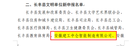 喜讯!中仑公司荣获第十四届长丰县文明单位荣誉称号