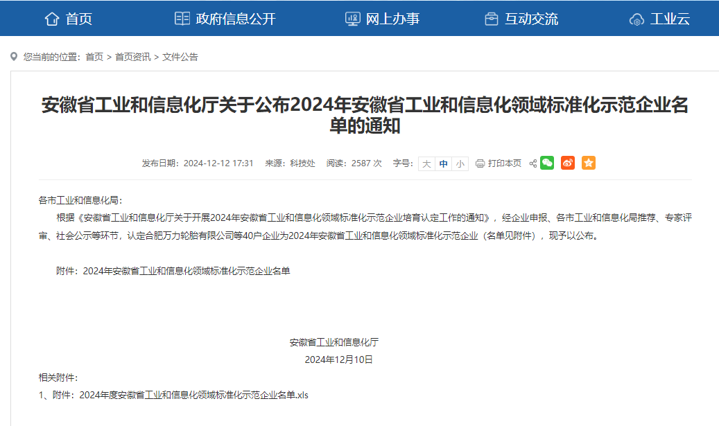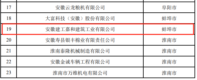 岁末年初,从安徽省工信厅官方网站传来喜讯,安徽建工嘉和建筑工业有限公司(下称公司)荣获“安徽省工业和信息化领域标准化示范企业(下称标准化示范企业)”称号,喜迎2025年开门红!
